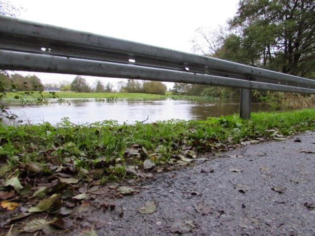 Vandstanden i åen var for øvrigt steget gevaldigt pga. torsdagens regnvejr. Der var ikke langt fra å til vej.